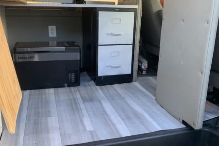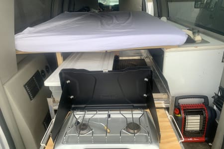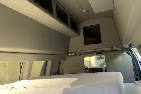 It’s a Chevy Express extended van, with a super tall roof (30 inches of standing head room) for those on the taller side. I sometimes use it as a mobile office and also camp in it. My goal was to equip it with enough amenities to offer some comfort on the road, while remaining in tune with nature. Some of my favorite features are the backup alarm and camera and the overhead storage bins. I also like that the walls and roof are fully insulated and upholstered. There is a rear A/C and heater unit that is only useable when the vehicle is running. There is a portable propane stove and a portable space heater. If you need additional ventilation when the van is stationary, just crack open the awning windows on the rear or side doors. I’m sure I’m forgetting something, but check out the photos, ask questions.