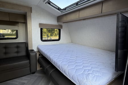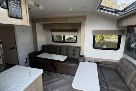 Looking for a trailer that’s built for adventure but still feels like home? This travel trailer is perfect for weekends at the lake, long road trips, or off-grid exploring. It comfortably sleeps 4–6 people and comes with everything you need to stay cozy and independent on the road.
