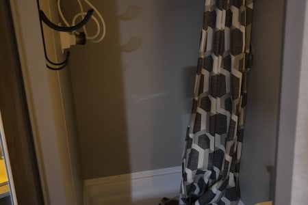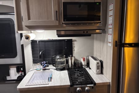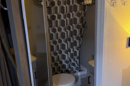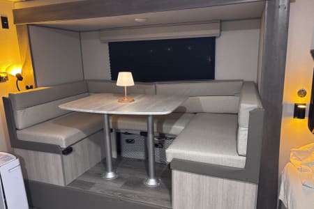 The power awning with LED lights creates a perfect outdoor lounge area. Set up your chairs, fire up the grill, and make s’mores under the stars! Includes an outdoor shower for rinsing off sandy feet or muddy pups after your adventures.