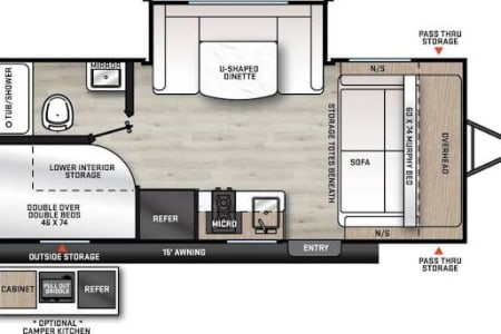 • Sleeps up to 6 – Queen bed, double bunks, and convertible dinette