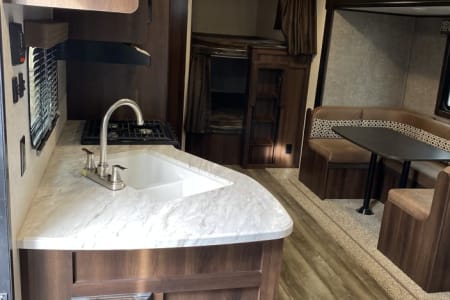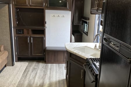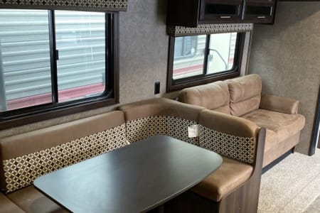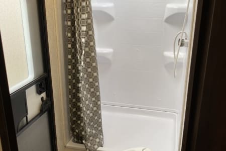 Discover the Jayco, designed for ultimate comfort and convenience. A double entry leading to an oversized bath featuring a spacious outdoor-accessible shower, it’s perfect for camping adventures. The layout includes a cozy Queen suite on one end and double bunks on the opposite side, ensuring everyone has a comfortable place to rest. The warm dark trim adds to the inviting ambiance, making your time spent here truly enjoyable. This unit Measures 32' in length on the exterior.