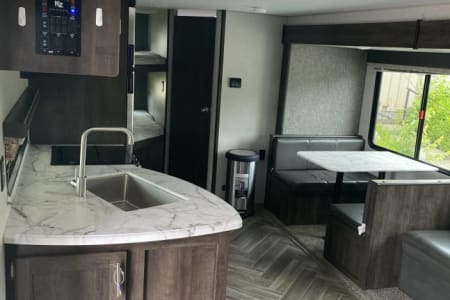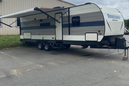 Introducing, our spacious Sportsmen SE camper, designed to enhance your camping experience! With an open floor plan and a convenient slide-out, you'll enjoy plenty of room to relax. The additional exterior bathroom door ensures privacy and easy access for guests, perfect for early risers or late nights. Each camper comes fully equipped with all the essentials, including bedding, kitchenware, and toiletries, so you can focus on making memories in the great outdoors!