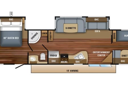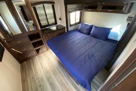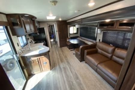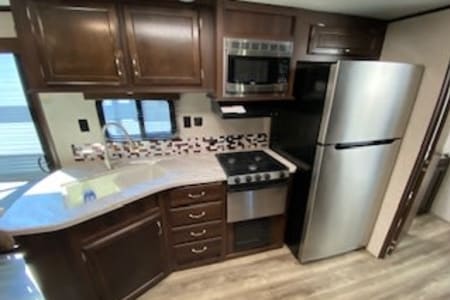 Experience luxury and comfort like never before with our Jayco Jay Flight! Measuring 42' in total length and 38' inside, this unit is designed to make your outdoor adventures feel like home. Gather around the dining table for family game nights, or enjoy your favorite tunes with indoor and outdoor speakers featuring Bluetooth connectivity. Whether you're whipping up a gourmet meal in the fully-equipped kitchen or simply enjoying popcorn under the stars, your vacation with Jez Camper Rentals is sure to be unforgettable! 1 private queen bed (2 adults) 2 double bunk beds (1 to 2 adults/2 kids each) 1 jack knife slide-out sofa single sleeper (1Adult or1 to 2 kids) 1 dining table to bed ( 1 adult or 1 to 2 kids) Bunk dinette to bed (1 Adult or 1 Kid) ​ Max Sleeping: 8/10 If your rental is not available for the date you desire, please give us a call to discuss your options.