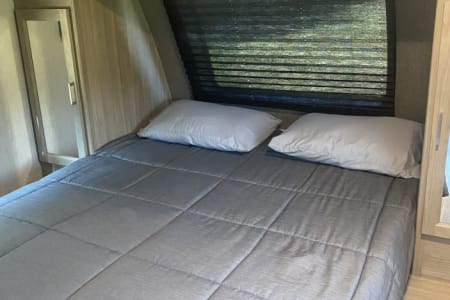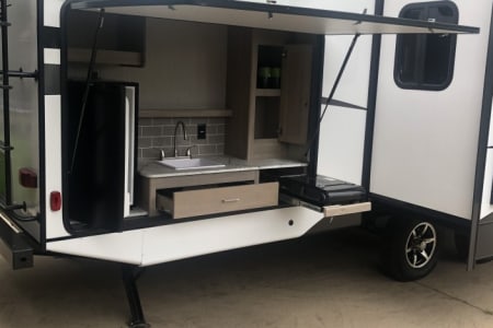Discover the ultimate camping experience with the Freedom Express RV by Coachman, featuring two spacious slide-outs for added comfort. With an exterior length of 37' this camper combines the luxuries of home with outdoor adventure. Enjoy the convenience of a fully equipped kitchen, a cozy dining area that converts to a bed, and a comfortable sofa that folds out into a full bed. The entertainment center, complete with a flat-screen TV, fireplace, and Bluetooth radio, ensures you can relax in style, while the master bedroom and bunk room provide ample sleeping space for family and friends. The outdoor kitchen comes complete with a mini fridge, sink for your convenience, and a Pit Boss flat-top griddle for all your cooking needs. Enjoy the freedom of preparing meals in the fresh air while embracing the great outdoors. Perfect for gatherings or quiet evenings under the stars!