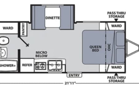 Hi everyone! I’m a 2022 Apex Nano M-191 RBS, and I’m the perfect little getaway buddy for couples or solo travelers who want comfort, style, and simplicity on the road. I’ve got a comfy queen bed and a dinette for meals, games, or just relaxing after a day of exploring.