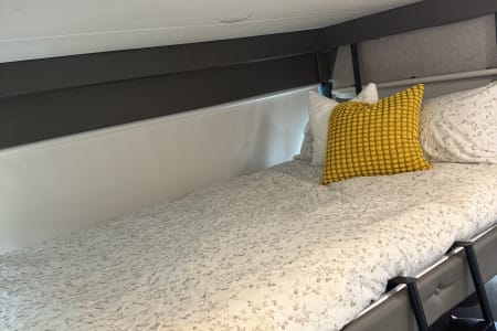• Large drop-down bunk (fits 2–3 children or 2 adults)