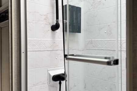 Clean, stocked, and comfortable — no campground restrooms necessary.