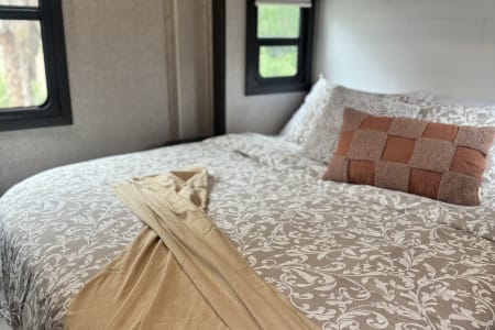 Welcome to Palm Canyon Coach, a warm and inviting Class A RV that feels more like a boutique guest suite than a camper. Whether you’re planning a glamping getaway, housing guests, or need a cozy temporary stay, this RV delivers. Literally.