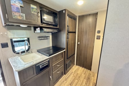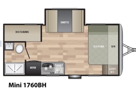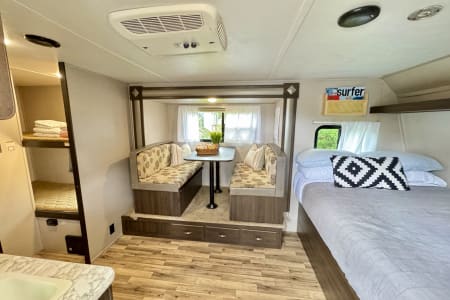 - Comfortably sleeps 4, up to 5–6 if you have little ones (dinette converts to a short bed)