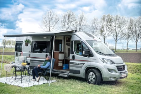 Meet our Adria Twin 600 SP (2017) – a stylish, compact, and comfortable 2-person campervan with an automatic gearbox and Euro 6 diesel engine.