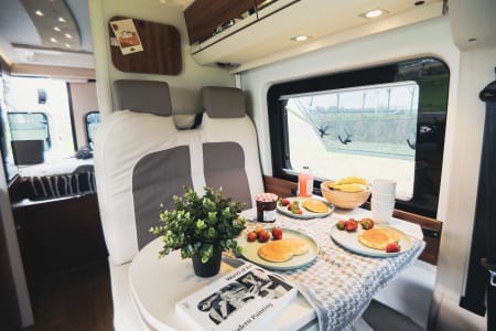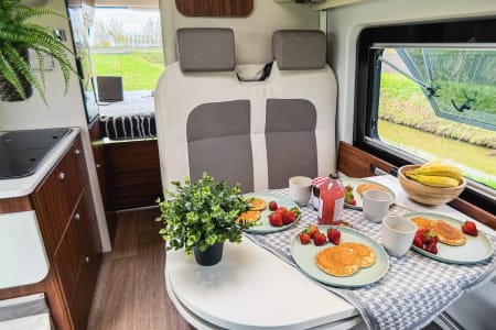 With built-in heating and a hot water boiler, you’ll travel in comfort all year round.