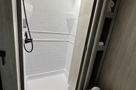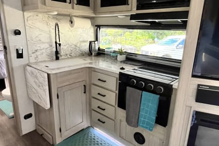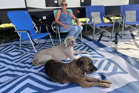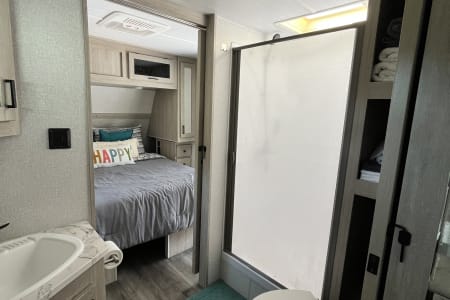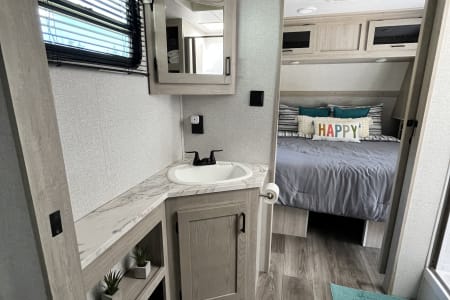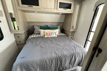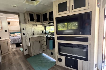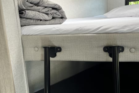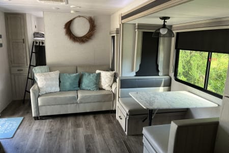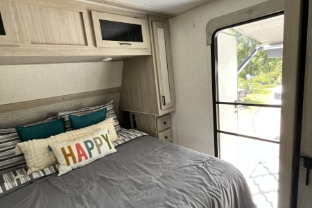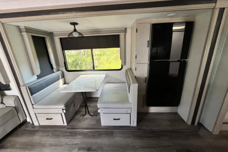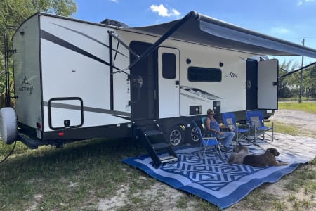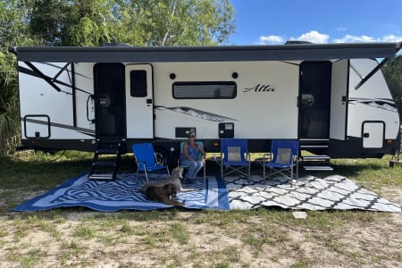 Ms Jewelz is ready for your Glamping Weekend at Long Point, Disney, the Keys or even as an extra room for your In-laws. She is fully equipped for the WHOLE family including the Fur Babies. She sleeps 8 with her huge twin Bunks, fold out sofa, convertible dinette, and her queen size bed. Her fridge is ready to be stocked for an entire week and you have more than enough room in her oversized shower and bathroom. Enjoy the shade under her 20' awning and breeze that flows through her 2 screen doors. She is ready for you!