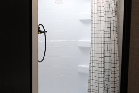 Desert-Ready AC: Equipped with a high-output 13,500 BTU roof-mounted AC and G20 dark-tinted privacy windows to keep you cool under the Arizona sun.