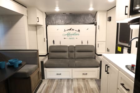 Space for the Whole Crew: Features a clever Murphy Bed design that converts from a comfy sofa by day to a plush queen bed by night, plus double-size bunks and a large U-shaped dinette slide-out.
