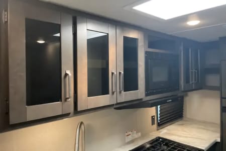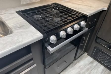 Cook inside or over the fire. However you enjoy camping the camper is ready to support it! We love to have some coffee in the morning while we ease into a camping day that feels like no other- so relaxing.