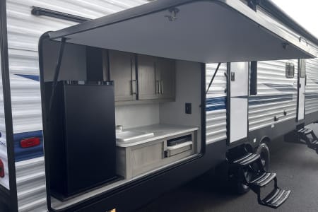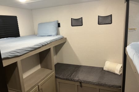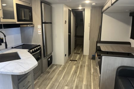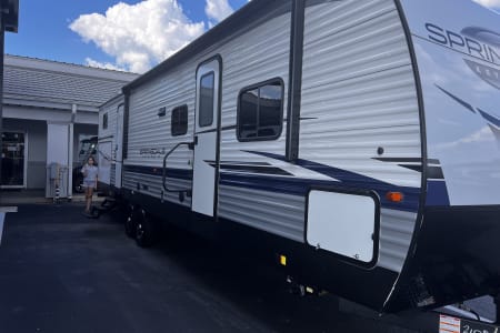 This spacious 2024 Keystone Springdale is the perfect family-friendly bunkhouse, offering sleeping space for up to eight with a private bedroom up front and a dedicated bunk room in the rear. Enjoy a modern interior with a full kitchen, large stainless-steel refrigerator, comfortable sofa and dinette, and bright LED lighting throughout. Dual entry doors—including direct access to the bathroom—make camping easy and convenient, while the outdoor kitchen adds even more flexibility for cooking and entertaining. A great choice for families, groups, or anyone wanting extra space and comfort on their next adventure here in Gulf Shores Alabama!