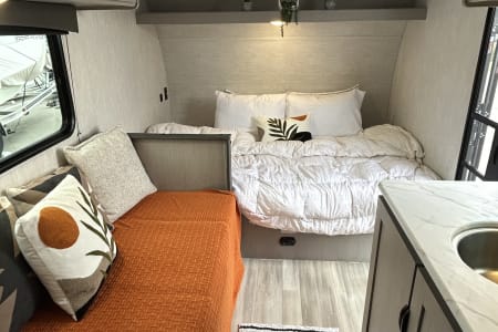 Comfortable sleeping area + convertible dinette