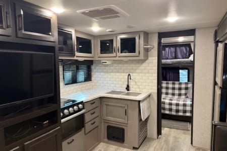 With a queen size master bed, 3 bunks, two sleeper sofas and a sleeper dinette, there's plenty of room for the whole family. Fully equipped and ready to go, you just need to bring your personal items,RFT family, friends, food and of course the fun!