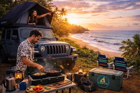 Included: Pillows, Fresh linens, Blanket, Beach towels and Chairs, Ice Cooler, Inverter, back up portable battery jumper, First Aid Kit. I am going to continue to add cool accessories to this Bad Ass Jeep ;)