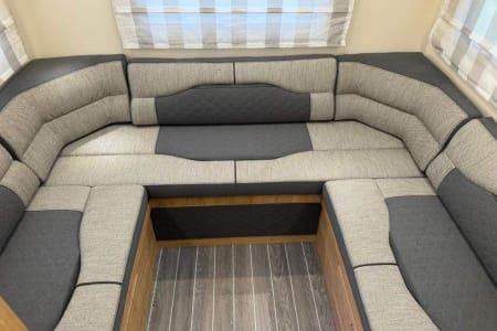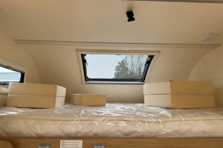 It has a comfortable 6ft U-shaped lounge and provides a perfect space and atmosphere for socialising and relaxing after a day outdoors, and then converts easily into either 2 single beds or a large double. The large overcab bed can be left made up but can also be pushed up to provide extra headroom when entering and exiting the cab. The dinette can also convert to another double bed making 6 berths in total.