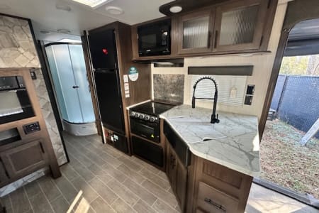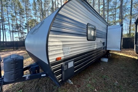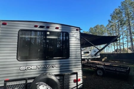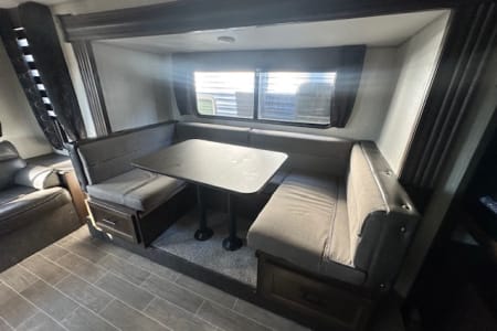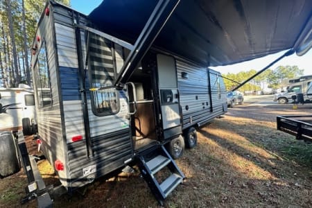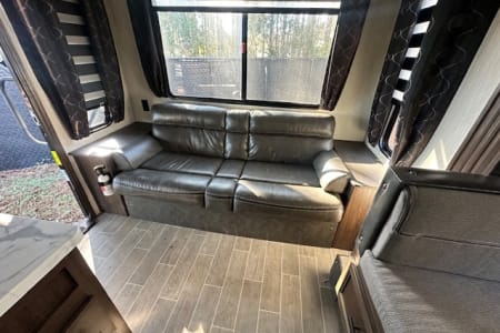 A great unit for a couple or 4 people, queen bedroom with door, nice large middle bathroom with large shower, toilet with lots of leg room, sink, U shaped dinette, couch, 16' awning. Small enough to get in state parks or even most driveways but big enough to be comfortable. Delivery only, no pets.