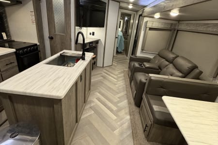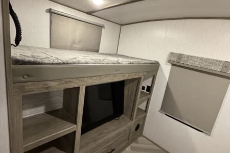 The 2022 Salem Hemisphere 310BHI is the ultimate travel trailer for families, groups, and guests who want space, comfort, and modern amenities. Designed with a true residential feel, this fully furnished bunkhouse sleeps 8–10 people and delivers a perfect balance of luxury and practicality. Inside, you’ll enjoy: • Private front master bedroom with queen bed and wardrobe storage • Rear bunkroom featuring double bunks and extra space for kids or guests • Large slide-out living area for maximum interior room • Full kitchen with 3-burner stove, oven, microwave, fridge/freezer, and pantry • U-shaped dinette and jack-knife sofa that convert into additional sleeping • Entertainment center with TV and indoor/outdoor sound system • Central AC and heating for year-round comfort • Full bathroom with shower/tub combo, sink, and vanity storage Exterior features include: • Outdoor kitchen for easy campsite cooking • Power awning with LED lighting • Spacious pass-through storage • Stabilizer jacks for a smooth, solid setup Rental-Ready Package from Norman’s RV Rentals: This camper comes fully stocked and furnished with: • Fresh linens, pillows, blankets, and towels • Cookware, dishes, utensils, and coffee setup • Cleaning essentials and starter supplies Add-On Options Available: • Starlink Wi-Fi for high-speed internet on the road • Generator rentals (no hookups? No problem!) • Delivery, setup, and pickup for a 100% hassle-free stay Whether you’re hosting driveway guests, planning a weekend getaway, or heading to your favorite campsite, the Salem Hemisphere 310BHI has everything you need to relax and recharge without sacrificing convenience. Book now at: Norman’s RV Rentals Call/Text: [phone number removed]Website: NormansRVRentals.com