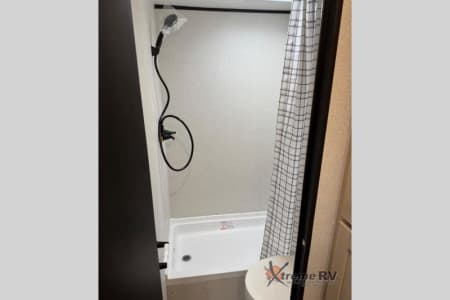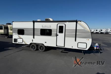 If you enjoy camping with a larger group, this travel trailer is perfect for you! There are double-size bunks in the back, which are right next to the private bath with a toilet and 40" shower. You can take the front queen bed with dual wardrobes, and any other guests can convert the sofa and booth dinette to sleeping space. A two-burner cooktop will let you make breakfast for everyone in the morning, and a 12V refrigerator will keep your perishables fresh!