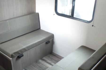 This lightweight and easy-to-tow travel trailer is perfect for couples or small families, comfortably sleeping up to 5. At just 21 ft 5 in long with a dry weight of 3,100 lbs and 399 lb hitch weight, it’s ideal for SUVs and smaller trucks. Inside, enjoy a practical layout with a 3.3 cu. ft. 12V refrigerator, 2-burner cooktop, and on-demand tankless water heater for continuous hot water. Stay comfortable in all seasons with an 8,000 BTU A/C and 20,000 BTU furnace. This camper includes a standard shower, power awning, and solid tank capacities (21 gal fresh / 28 gal grey / 28 gal black) for weekend trips or longer stays. It also features 30-amp service and a 20 lb LP tank. Compact, efficient, and simple to set up—this camper is a great choice for state parks, weekend getaways, and first-time RV renters.
