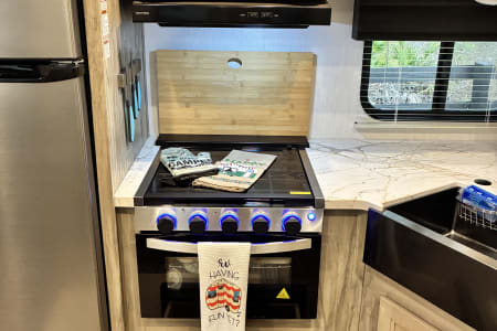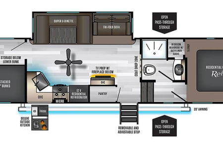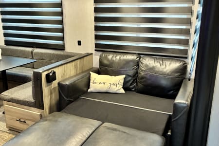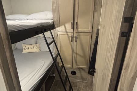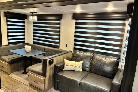 With sleeping space for up to 10 guests (queen bed, full size bunk beds, tri-fold sleeper sofa, and a converted dinette), there’s room for the whole family—even the grandparents! No linens no worries, the beds come fully made and ready for you to have a good night's rest.