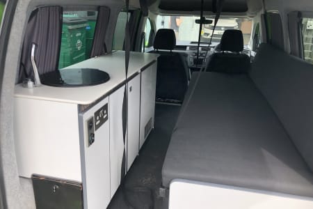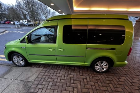 Our lovely little bright green camper is the perfect size to explore the NC500 or any of Scotland's tight roads. At less than 5m it fits perfectly in to a normal car parking space. It has 1 double bed, a chest fridge, a little sink and a gas burner stove. The heating is also gas powered. We will provide all kitchen equipment.