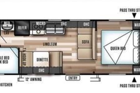 11 CU. FT. refrigerator. Exterior LED lit awning to help keep things in the shade and dry at night. Easy to tow with roomy interior.