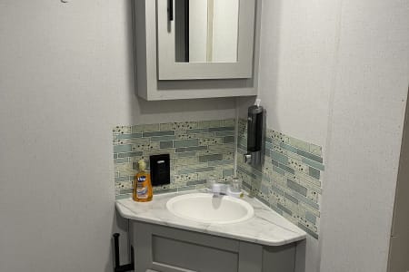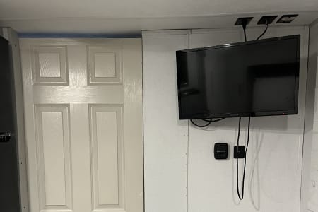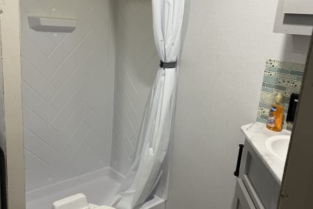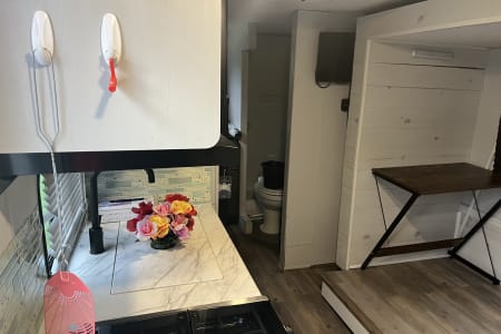 Full size porcelain toilet. Washer and dryer. Full size fridge (10.7 cubic ft) with freezer. Two propane tanks. Coffee maker. Ice maker. FOGATTI tankless water heater-unlimited hot water. Fold away dining table which can be removed for more space to accommodate an air bed. Firestick TV and popcorn for movie night.