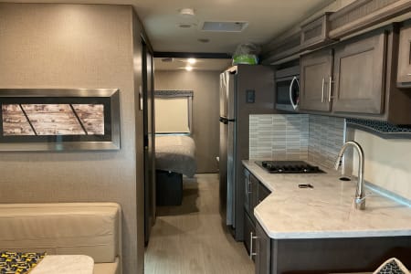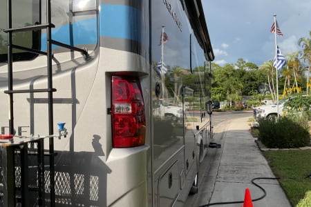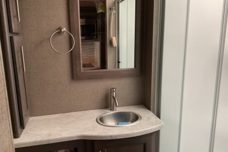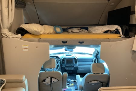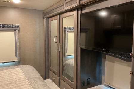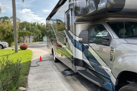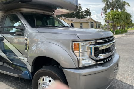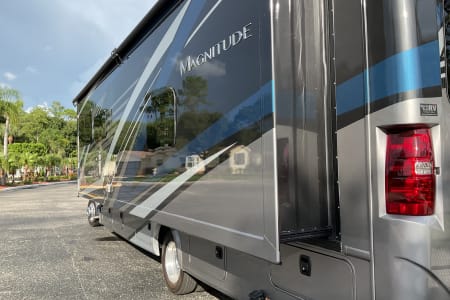 2022 Thor Magnitude SV34 Super C in excellent condition. Drivers side slide, Onen diesel generator, 2/4 wheel drive on Ford F550 heavy frame. King bed, over cab bed, table converts to bed, 3 TV’s 2 inside one outside under full length awning. RV comes with heavy duty hitch mounted carrier with ramp for mobility scooter or bikes (500 lb capacity). XM radio included. Perfect size for state parks.
