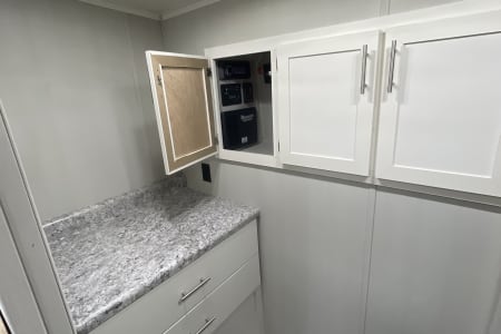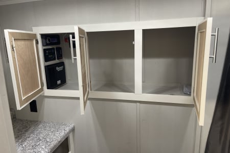 With over 6’ of headroom under the queen size electric bed in the rear, there is plenty of cargo space.