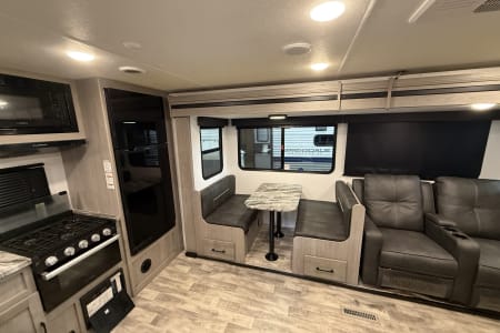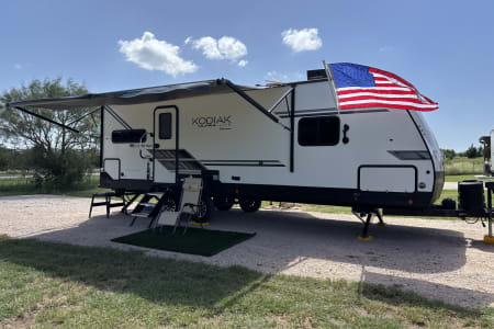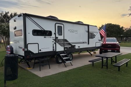 Meet "Longhorn Explorer" — your fully delivered and set‑up getaway for exploring the heart of Texas. We handle the hard part so you can get straight to relaxing. Picture this: you arrive at your favorite campground, the awning is out, lights are on, the RV is leveled, cooled, and ready for your first Texas sunset. That’s how every trip begins with Hill Country Explorer. This 2024 Dutchmen Kodiak Ultra‑Lite brings modern comfort to your outdoor adventures. Inside, you’ll find a bright rear kitchen, cozy recliners, a private bedroom, and all the amenities that make it feel like a home away from home. Perfect for couples or small families who want to enjoy the Hill Country without the hassle of hooking up, backing up, or setting up. We deliver, you unwind — it’s that simple.