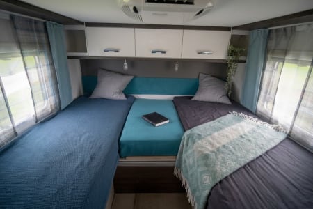 Henri offers the perfect balance between luxury, comfort and ease of use. Thanks to the automatic transmission, the air conditioning in both cabin and living space, and the smart layout, this is an ideal camper for both short trips and long adventures through Europe.