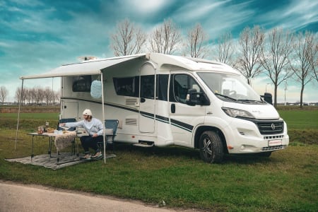 Meet Henri, our spacious and comfortable Dethleffs Trend ST from 2018 – perfect for couples or small families who want to enjoy a carefree and luxurious camper experience. This semi-integral offers plenty of living space, a modern look and a great driving experience thanks to the automatic transmission.