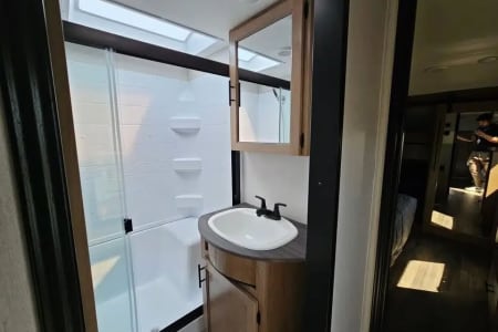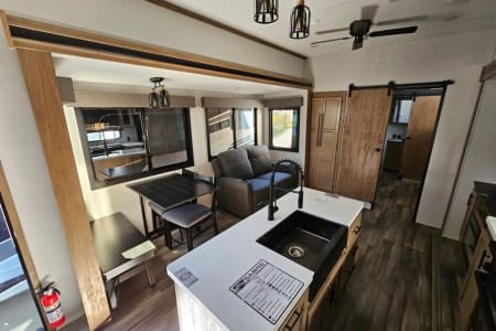 Perfect for families, groups, or extended getaways, this beautifully maintained RV offers upscale finishes, thoughtful design, and plenty of room to relax whether you’re camping, glamping, or staying parked long-term.