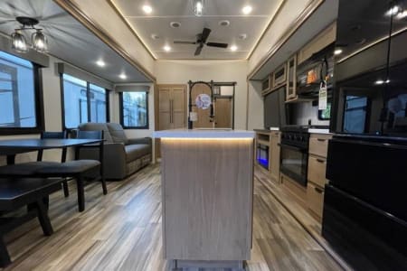Experience the comforts of a home with the freedom of RV living in this spacious 5th wheel RV, a large and modern luxury fifth wheel designed for unforgettable stays.