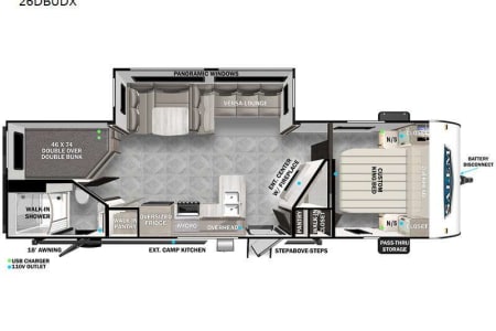 The 2023 Salem 26DBUD offers a modern layout with family-focused comfort and upgraded features. Designed for easy living, this bunkhouse model provides spacious sleeping arrangements and a bright, open interior.