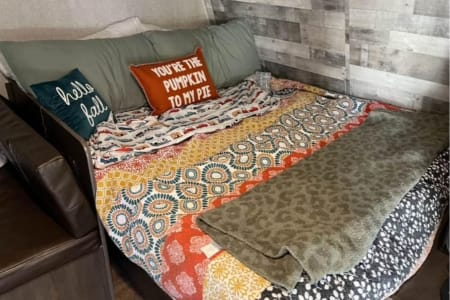 Home away from home! This camper gives you comfort and style in a small space. Only being 21ft bumper to hitch it can fit almost anywhere on and off grid.