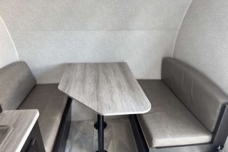 Our 2022 Braxton Creek Free Solo is a lightweight and easy-to-tow 18 ft travel trailer perfect for couples or small families. It comfortably sleeps up to 4 with a front bed and a dinette that converts into an additional sleeping space.