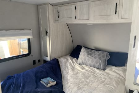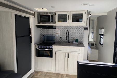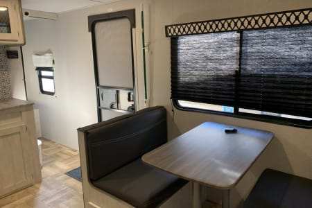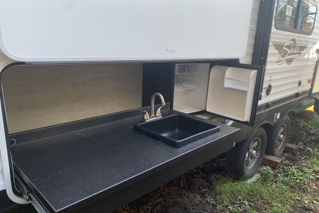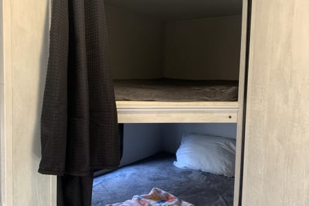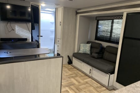 Like new 2022 30' Forest River Shasta Travel Trailer. Has a private bedroom with queen size bed, full size bunk beds, traditional dining area that converts into a bed, as well as a sofa that folds into a bed. The slide out on the driver's side provides a spacious and functional design. Modern amenities which include 32in smart TV in the main living area, Bluetooth soundbar, sofa has USB ports in the cup holders, as well as USB ports in each bunk / each side of primary bed, outdoor kitchen area, outdoor shower, large awning with LED Lights, electric jacks, stabilizers. Spacious bathroom. Trailer will be stocked with most things needed.