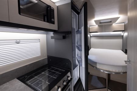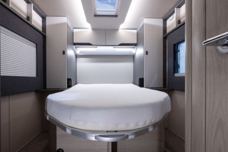 Designed to cater to the needs of dynamic families, this layout offers fixed double Island bed at the rear and electric dropdown small double bed over the lounge area, ensuring comfort and flexibility in one package.