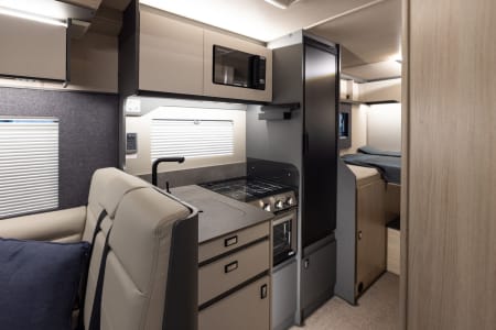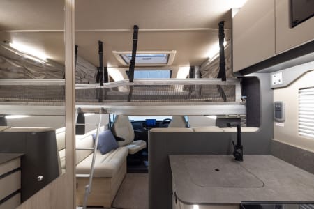 Incorporating numerous practical features for your holidays away, the new 7.32m F-70, low-profile coachbuilt delivers a spacious front living area and large Twin or double bed at the rear. The popular and integrated electronic small double dropdown bed is, to make bedtime that much easier. This is further complemented by plenty of LED lighting as well as natural light throughout for a clean, modern feel inside this family motorhome.