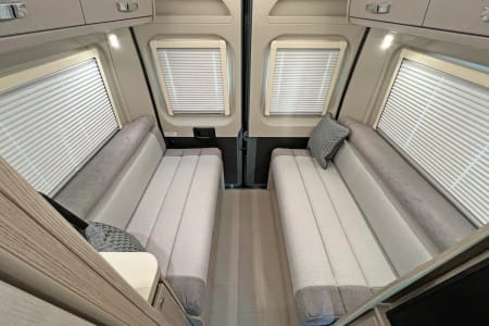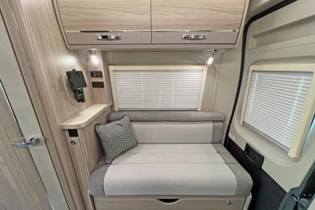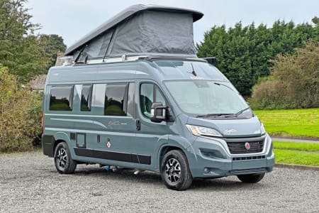 This 2024 specification Elddis Signature CV80 is based on a Fiat Ducato chassis with a 2.2 L 140 BHP engine paired to a 9-speedautonatic gearbox. A 4 berth, this Signature CV80 model has, Front dinette with a forward facing bench seat fitted with seat belts and making good use of the detachable/extendable table along with the driver and passenger swivel seats. The pop-top double bed can be accessed from the dinette area via a removable ladder. The centre kitchen comes with a 2 burner gas hob plus 240v hotplate, combination grill/oven, stainless steel sink with matching worktop cover, microwave oven and a stylish Thetford compressor fridge, opposite the kitchen is the very practical wash/wc/shower room with some stylish touches. Through to the rear is the spacious lounge with two lounge seats down either side which easily converts into a sumptuous transverse double bed. This model also comes with electric entrance step, heating and hot water system, LED lighting, TV , DAB radio with Bluetooth, USB and steering wheel controls for radio and telephone, pleated cab blinds, solar panel, S5 Tracker*, omnidirectional aerial, reversing camera and a 25ltr underslung gas tank.