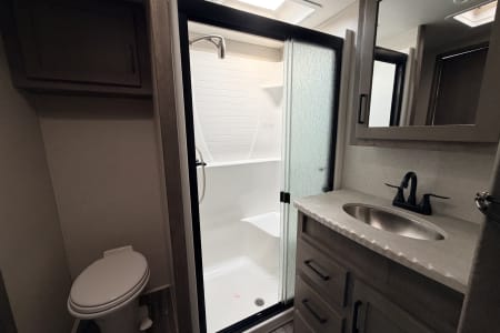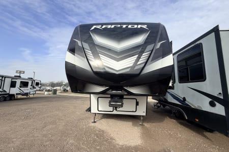 The Keystone Raptor toy hauler has rugged flexibility that will entice any adventurer! The Raptor's sophisticated design makes it an attractive choice for anyone, and the hardworking innovation makes it suitable for all thrill-seekers. No matter who you are, the Raptor has something that you'll love, like the wireless phone charging station, on-board fuel station, Zero Gravity ramp door, Onan 5,500W gas generator, and Furrion wireless back-up camera. The heated and lighted pass-through storage area gives you an additional space to place your gear, and the outside shower allows you to rinse off your toys or muddy boots before coming inside. The Raptor also has a few Keystone-exclusive features, like the Tru-fit slide construction, KeyTV, and Tuf-Lok thermoplastic duct joiners.