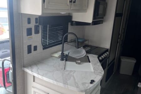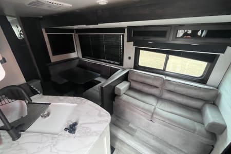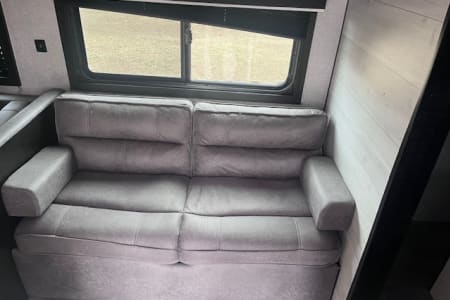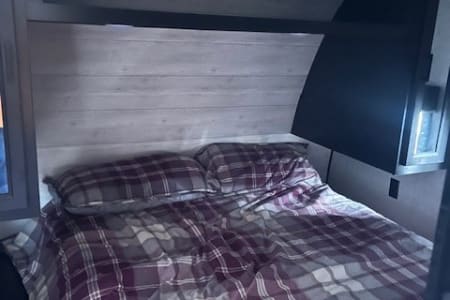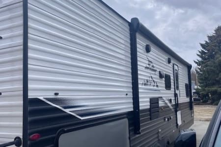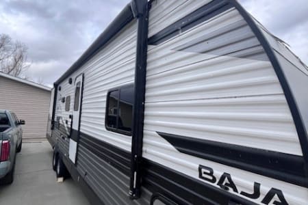 Hit the road and enjoy the comfort of home with our 33- foot Jayco Jay Flight travel trailer. This spacious and easy-to-enjoy camper is perfect for family vacations, weekend getaways, hunting trips. or exploring the beautiful outdoors of Montana. Inside you will find a roomy layout with plenty of sleeping space, a comfortable living area, and all the essentials you will need for a relaxing trip. The kitchen is fully equipped with a refrigerator, stove, microwave and plenty of storage so you can cook meals just like at home. the dining and living area easily convert into additional sleeping space. The private bedroom offers a cozy queen bed, while the bunkbeds and convertible seating make it great for families or groups. The bathroom includes a shower, sink and toilet for convivence wherever you travel. Whether you're planning a trip to Yellowstone, a weekend at the lake or a camping adventure in the mountains, this Jayco makes it easy and comfortable. This Jayco also offers a full awning and outdoor radio.