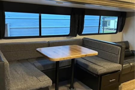This camper served our family so well, we couldn't wait to share it with others! Enjoy time with your family in this expansive camper with private bedroom and bunk room and large living area. Large indoor and outdoor kitchen make family mealtime a breeze. This camper is perfect for large families or if you're looking for an extended stay in something that's not cramped, this camper fits the bill!