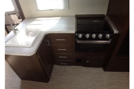 New under 5000 lbs for easy towing. Luxury inside you’ll feel like your at home. Available if you needed, bedding, towels, some dishes, pots and pans. It has bunk beds, dinet that can be used as a bed, and a queen bedroom which I upgraded to a foam mattress. Available at request lining for beds and towels. Also comes with some dishes, outdoor mini kitchen. Will loan trailer hitch.